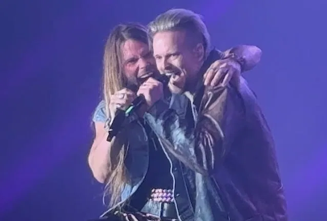 Former SKID ROW vocalist Erik Grönwall made a special appearance with his old band H.E.A.T on stage last Friday (May 23) at La Riviera in Madrid, Spain, where they performed three tracks: “Breaking The Silence”, “Inferno”, and “Living On The Run”. Fan-captured footage from the concert — which was also professionally recorded for an upcoming DVD and Blu-ray release — can be viewed below.