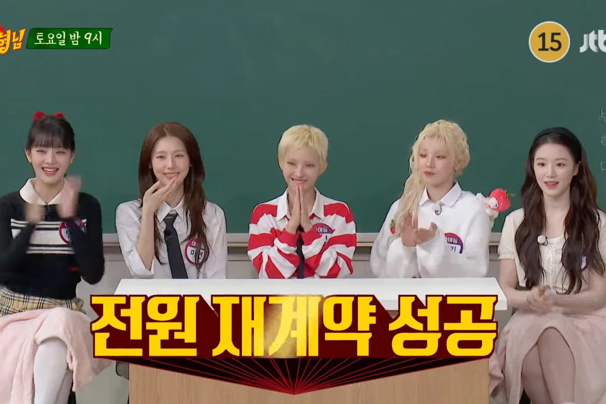 The teaser starts with the “Knowing Bros” crew congratulating i-dle on their contract renewal with Cube Entertainment as a complete group. Jeon Soyeon humorously notes their new name, saying, “We recently held a funeral for the ‘G.’”